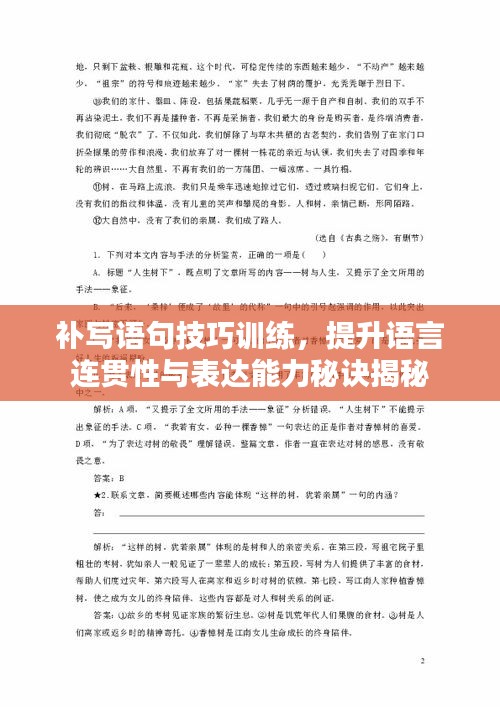 在日常学习与工作中,我们时常需要进行各种类型的文本写作,补写语句作为一种重要的语言运用技巧,对于提升文章的整体连贯性和表达效果具有关键作用,本文将围绕“补写语句专题训练”展开讨论,帮助大家在语言运用上更上一层楼。