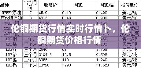 伦铜期货行情,即伦敦金属交易所(London Metal Exchange,简称LME)的铜期货价格,是全球铜市场的重要参考指标。伦铜期货合约以其高流动性、透明度和权威性而闻名,吸引了全球众多投资者和企业的关注。本文将实时分析伦铜期货行情,帮助读者了解当前市场动态。