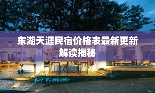 随着旅游业的蓬勃发展,民宿行业也日渐兴起,对于计划前往东湖天涯的游客来说,了解最新的民宿价格表至关重要,本文将为您详细介绍东湖天涯民宿的最新价格表,帮助您做出更明智的旅行决策。