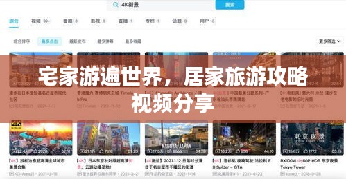 1、搜索关键词:在搜索引擎中输入“居家旅游攻略”、“宅家旅行”等关键词,就能找到大量相关视频。