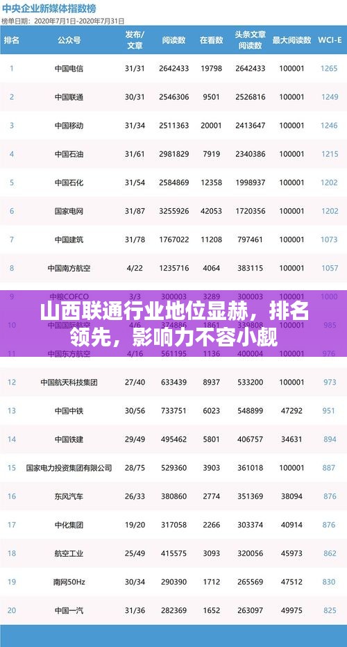 山西联通行业地位显赫,排名领先,影响力不容小觑