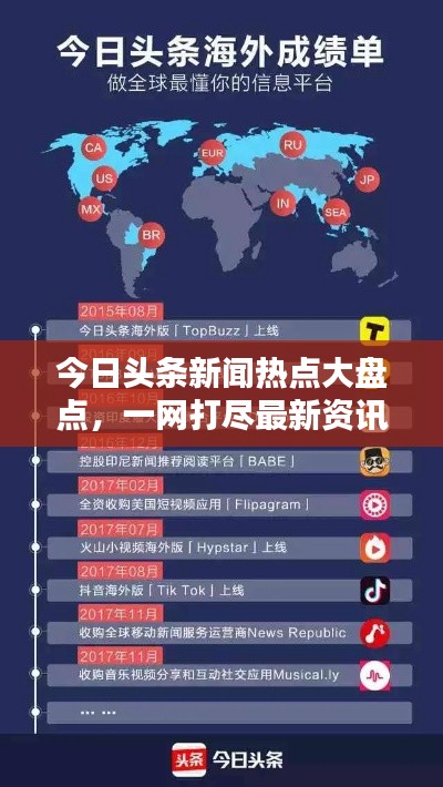 今日全球各地的新闻头条涵盖了政治、经济、社会、科技和娱乐等各个领域,这些新闻反映了全球社会的动态和发展趋势,也引发了人们对未来的思考和关注,无论是政治局势的变化,还是科技领域的突破,亦或是娱乐产业的繁荣,都与我们的生活息息相关。