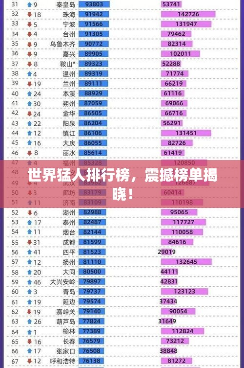 当我们谈论“世界猛人排名”,我们是在探讨那些在各个领域展现超凡实力、坚韧不拔精神的人物,他们或许是运动员,凭借超凡的体能和毅力在赛场上创造佳绩;或许是企业家,凭借智慧和勇气在商业领域开疆拓土;或许是社会活动家,推动社会进步,改变世界格局,我们将根据他们的成就和影响力,盘点世界猛人排名。