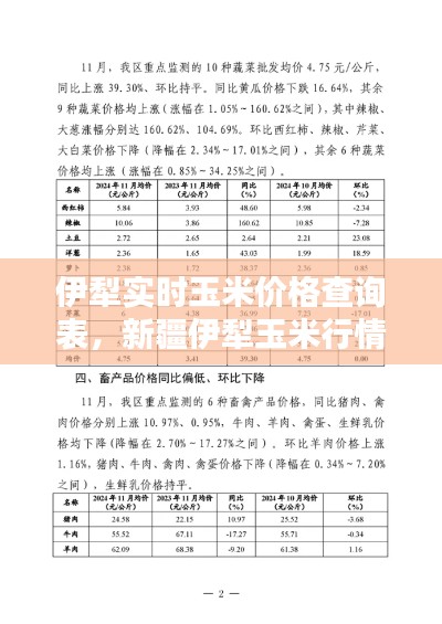 玉米作为一种重要的粮食作物,在我国农业生产中占据着重要地位。伊犁地区作为我国重要的玉米产区之一,其玉米价格波动对于农民和消费者都具有重要意义。为了方便大家及时了解伊犁地区玉米的实时价格,本文将为大家提供一份详细的伊犁实时玉米价格查询表。