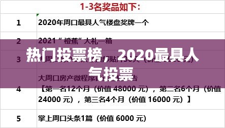 热门投票榜,顾名思义,是指在一定时间内,通过投票方式产生的热门话题、人物、产品等的排名榜单。这种榜单通常出现在社交媒体、网络论坛、电商平台等多个平台上,旨在通过大众的投票来反映当前的热门趋势和公众的关注点。