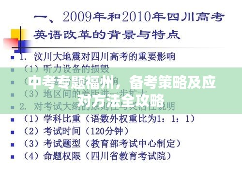 中考是每个初中生的重要转折点,对于即将参加中考的福州学生们来说,备考的重要性不言而喻,本文将围绕“中考专题福州”这一主题,探讨备考策略与应对方法,帮助学生们更好地应对中考挑战。