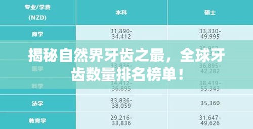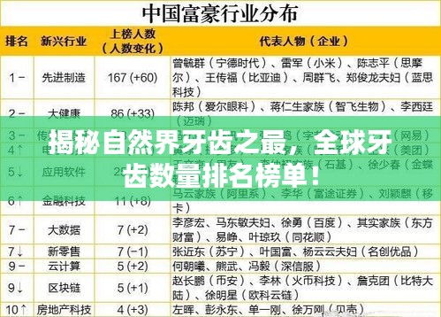 在自然界中,一些生物以其独特的牙齿数量而引人注目,本文将为您揭示牙齿最多的世界排名,带您领略这些自然界的奇迹。