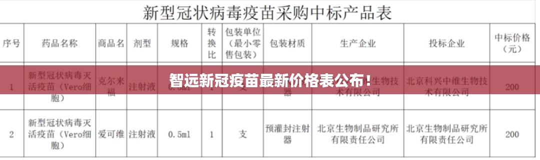 随着全球新冠疫情的蔓延,疫苗接种已成为防控疫情的重要措施之一,智远新冠疫苗作为国内外广泛认可的品牌之一,备受关注,本文将围绕智远新冠疫苗价格表最新公布的信息展开介绍,为广大市民提供详细的参考。