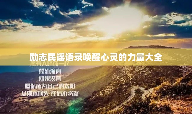 励志民谣语录大全,如同一座心灵的宝库,为我们提供了无尽的力量和勇气,在这个充满挑战的时代,我们应该学会从民谣中汲取力量,激发自己的潜能,实现更大的成就,让我们一起感受励志民谣的力量,唤醒心灵,共同追求更美好的明天。