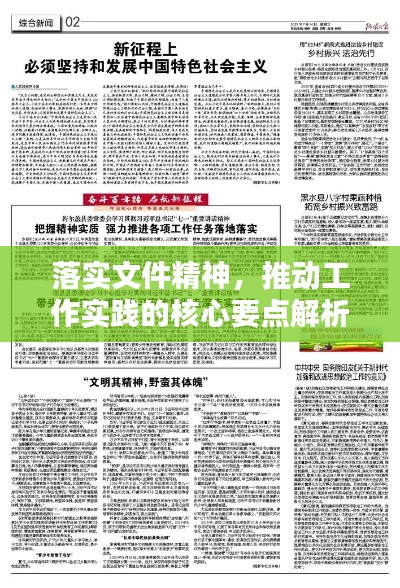 落实文件精神是推动工作实践的关键所在,我们要深入理解和把握文件精神的内涵,制定具体实施方案,加强组织领导,强化监督检查,注重宣传引导,结合实际创新实践,持续改进与提高,只有这样,才能将文件精神转化为具体行动和成效,推动工作实践取得实效。