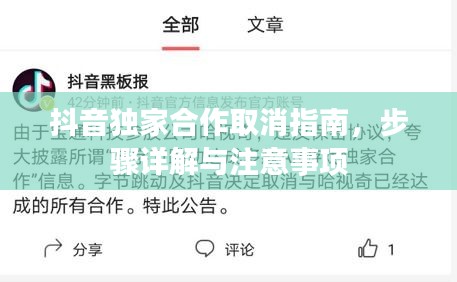 取消抖音独家合作是一个需要谨慎处理的过程,在取消合作时,应遵守合同条款,尊重对方,保留好相关证据,并提前评估可能的风险,通过本文的介绍,希望能帮助读者更好地了解如何取消抖音独家合作,并在实际操作中避免出现问题。