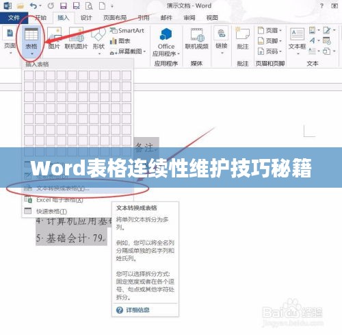在Word中,可以通过调整表格属性来保持表格的连续性,选择表格,点击鼠标右键,选择“表格属性”,在弹出的对话框中,可以设置表格的边框、单元格间距等属性,以使表格与文档内容更好地融合。