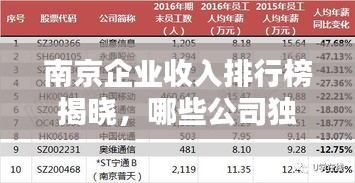 南京,作为江苏省的省会城市,一直是经济发展的重镇,随着时代的变迁,南京的公司和企业如雨后春笋般涌现,各具特色,蓬勃发展,在这些企业中,哪些公司的收入在南京独占鳌头呢?本文将为您揭示南京公司收入排名,带您一探究竟。