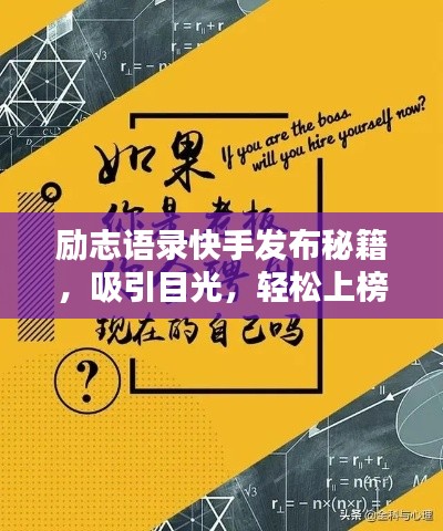 随着移动互联网的普及,短视频平台如快手等已经成为广大网友获取信息、交流互动的重要渠道,励志语录以其鼓舞人心、激励人们前行的特点,深受大众喜爱,那么如何将励志语录有效地发布到快手上,让更多的人看到并从中受益呢?本文将为你详细介绍。